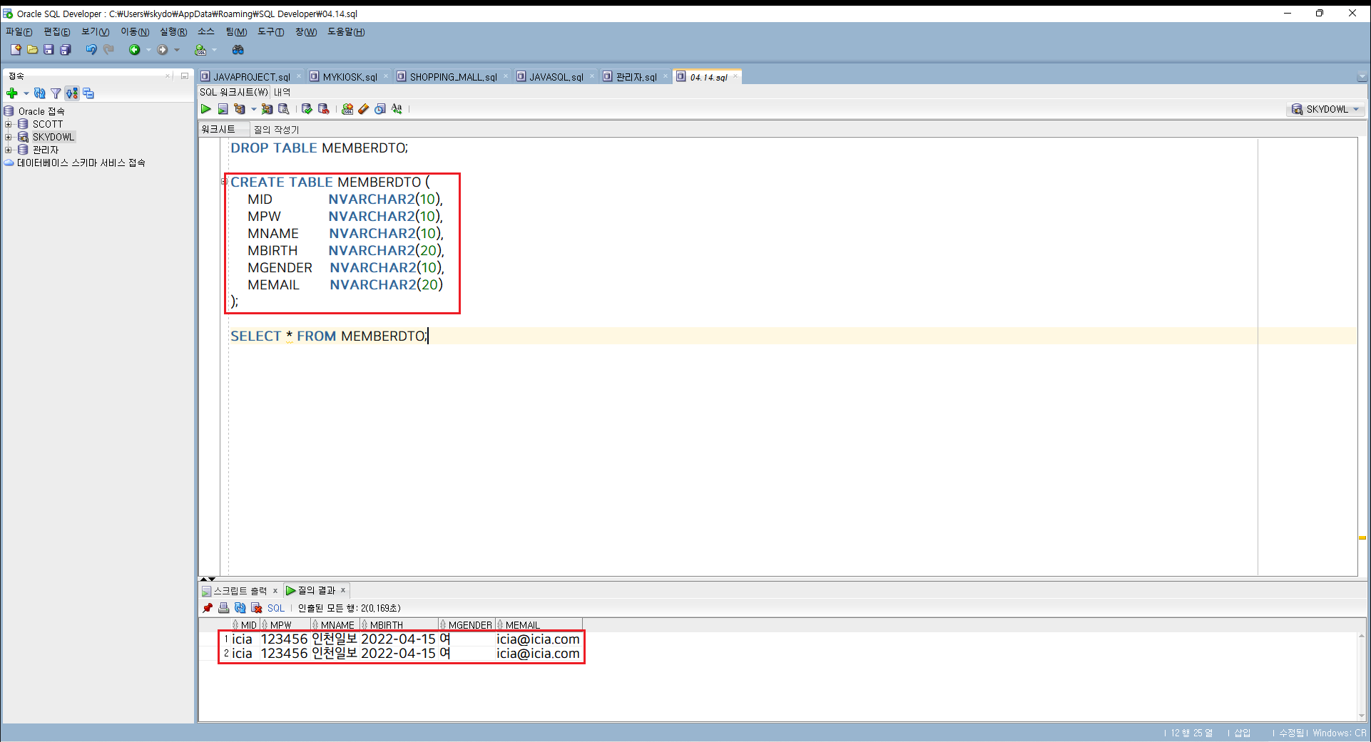 | 54일차 교육 Spring - Eclipse, Oracle SQL 정리 (0) | 2022.04.18 |